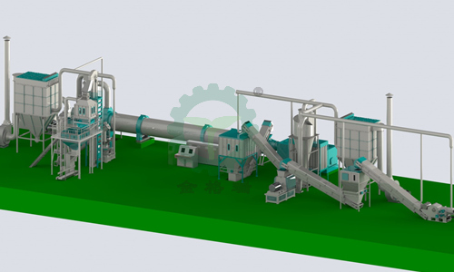 原料水分在30%-40%之間,需配備滾筒烘干機,時產1-2t木材顆粒的烘干筒尺寸為1.2m*12m